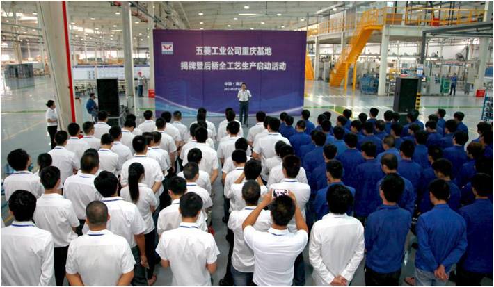 2015年8月18日上午,廣西汽車集團(tuán)所屬公司柳州五菱汽車工業(yè)有限公司(簡(jiǎn)稱:五菱工業(yè)公司)重慶基地揭牌暨后橋全工藝生產(chǎn)啟動(dòng)活動(dòng)在重慶舉行。五菱工業(yè)公司副總經(jīng)理李薇旻、重慶基地項(xiàng)目團(tuán)隊(duì)、客戶代表等參加活動(dòng)并見證重慶基地揭牌。