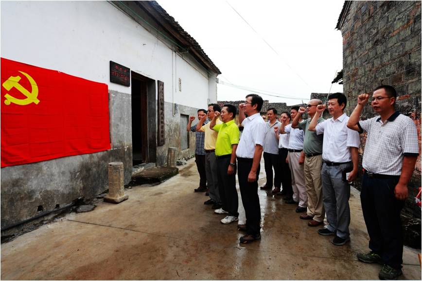 (圖為黨委中心組成員到柳城縣愛國(guó)教育基地——桂黔邊人民保衛(wèi)團(tuán)柳城武工隊(duì)活動(dòng)舊址現(xiàn)場(chǎng)學(xué)習(xí))