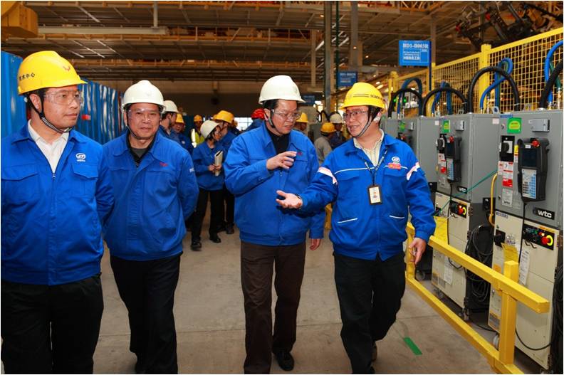 (圖為集團(tuán)董事長(zhǎng)、黨委副書記韋宏文到客戶上汽通用五菱股份公司現(xiàn)場(chǎng)走訪)